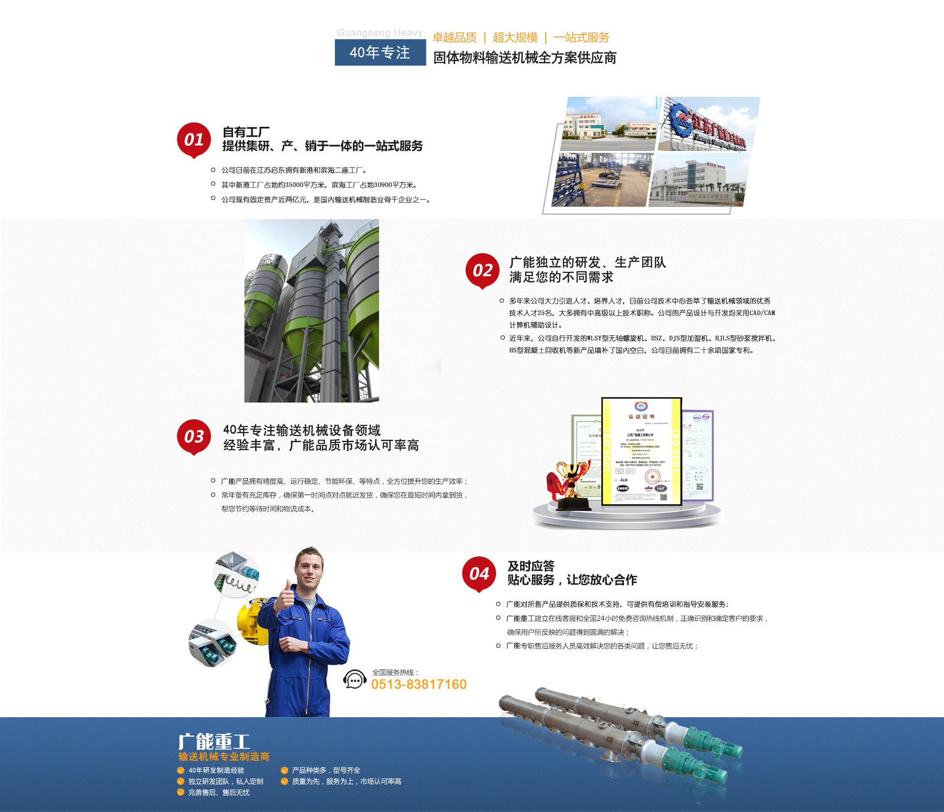 公司是專(zhuān)業(yè)從事各類(lèi)輸送機(jī)械設(shè)計(jì)與制造的企業(yè),目前在江蘇啟東擁有新港和濱海二座工廠(chǎng),其中新港工廠(chǎng)占地約35000平方米,濱海工廠(chǎng)占地30900平方米......