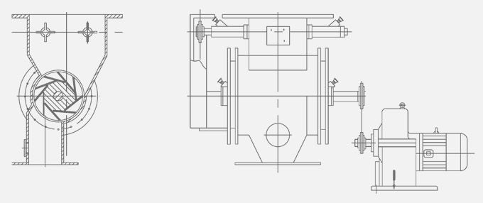 TY型彈性葉輪給料機(jī)配置形式有兩種:一種帶閥門裝置;另一種不帶閥門裝置。