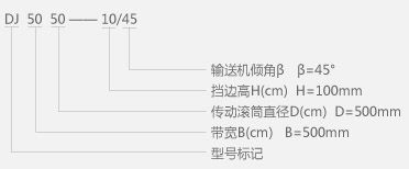 其中:D-帶式輸送機(jī);J-大傾角。