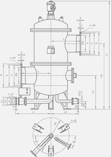 本機(jī)設(shè)有自動反沖洗功能,安裝了高精度靈敏的差壓控制器,監(jiān)測進(jìn)出腔的壓力值,當(dāng)兩腔由于渣堵塞濾芯引起壓力差達(dá)到設(shè)定值時,差壓控制器輸出電信號,啟動反沖系統(tǒng),將渣排出。本機(jī)使用一段時間后,對沉積罐底的固體物質(zhì),可通過本機(jī)下方手動球閥排出。當(dāng)設(shè)備檢修時,還可以打開罐體上的盲蓋,人工進(jìn)一步清除罐體內(nèi)大型垃圾。